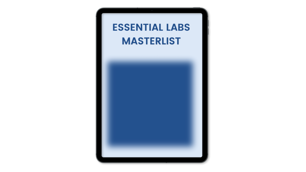Essential Labs Master List: Get my go-to list of the most essential labs I run for every client – so you can stop wasting money on tests that don’t give you real insights and focus only on these that truly matter ($97 value)